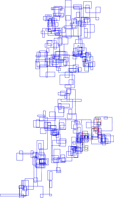 This visualization was inspired by (and is a poor imitation of) Stefanie Posavec’s visualizations of On the Road. Here’s a blog post, the derived data, and the raw entity and quote data.