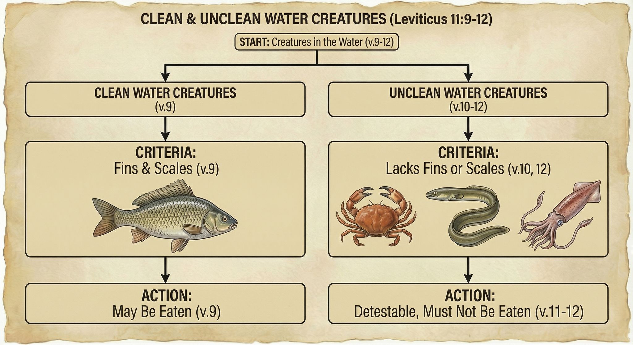 Clean and Unclean Water Creatures (Leviticus 11:9–12)